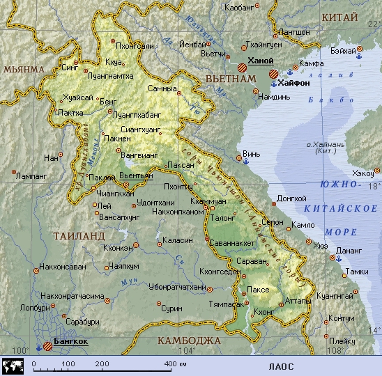 Лаос (географическая карта).