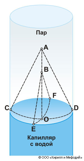 Применение закона Лапласа к поверхности раздела вода — пар в капилляре: р = р