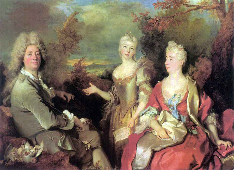 Никола де Ларжильер. Семейный портрет. 1710-1712 годы. Холст, масло. Лувр, Париж. Ранее считалась, что эта картина является автопортретом художника с женой и дочерью.