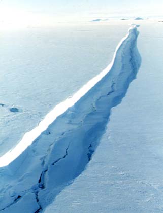 Ледник Ларсена. Антарктида. На переднем плане видна трещина – одно из последствий глобального потепления. Фото 1997 г.