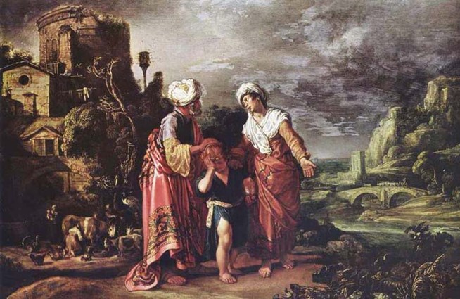 Питер Ластман. Прощание Агари. 1612 год. Дерево. Кунстхалле, Гамбург.