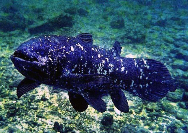 Латимерия. Главной отличительной особенностью кистеперых рыб является строение мясистых парных грудных и брюшных плавников. Их скелет состоит из нескольких разветвленных в форме кисти сегментов.