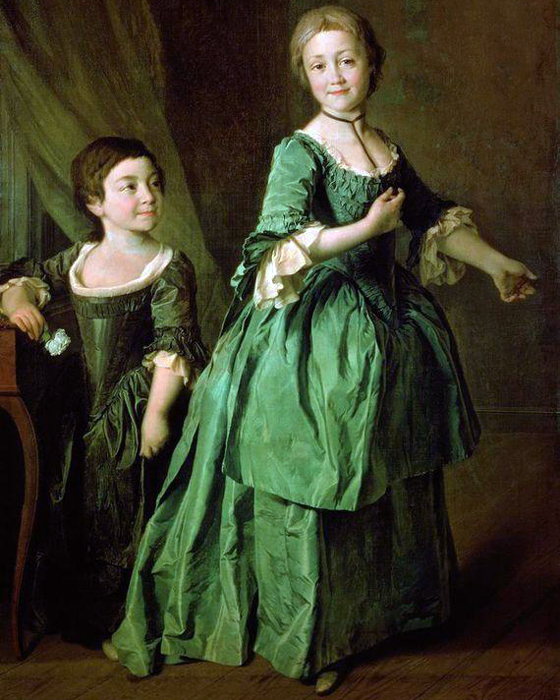 Д.Г. Левицкий. Портрет воспитанниц общества благородных девиц Феодосии Степановны Ржевской и Настасьи Михайловны Давыдовой. 1772 год. Холст, масло. Русский музей, Петербург.