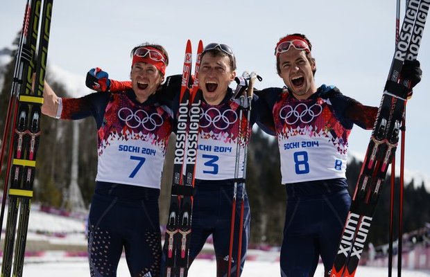 Максим Вылегжанин, Александр Легков и Илья Черноусов. Сочи. 2014 г. Источник: © РИА Новости, Константин Чалабов