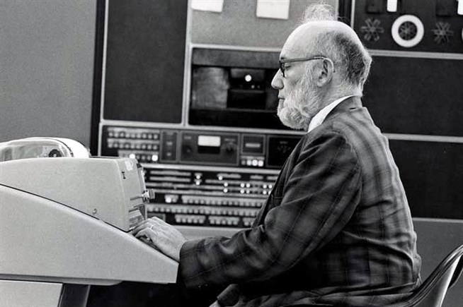 Джошуа Ледерберг в компьютерной лаборатории Стэнфордского университета. 1974.