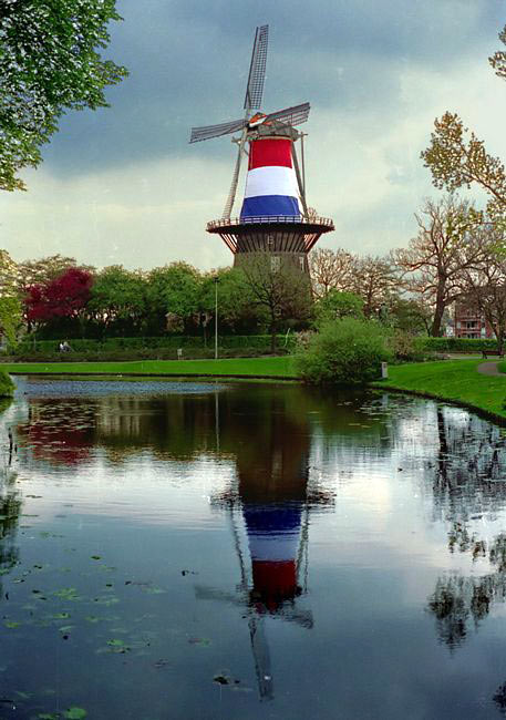 Лейден. Ветряная мельница, окрашенная в цвета национального флага.