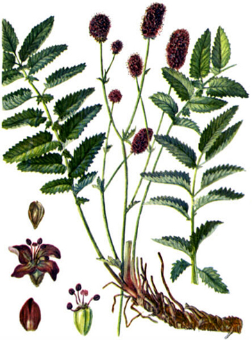 Лекарственная кровохлебка или аптечная кровохлебка (sanguisorba officinalis). Рисунок.