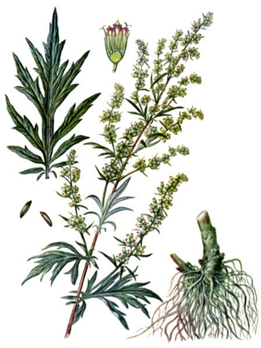 Обыкновенная полынь или чернобыл (чернобыльник; artemisia vulgarus). Рисунок.