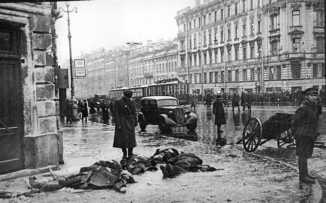 Ленинградская битва. Ленинград. Угол Невского и Лиговского проспектов. Жертвы первых обстрелов города немецкой артиллерией. Сентябрь 1941 года. Снимок Д. Трахтенберга.