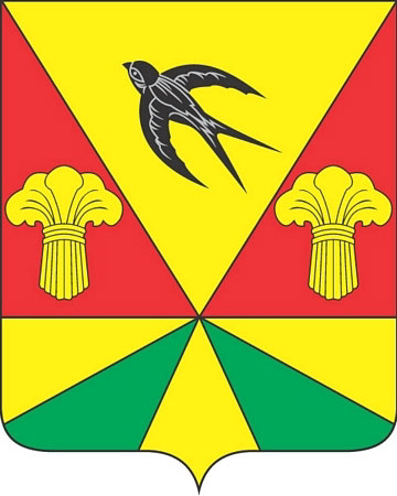 Герб Ленинск-Кузнецкого района был принят 26 января 2005 года. В червленом поле золотые снопы, вверху — летящая ласточка.