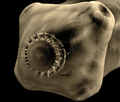 Сколекс свиного солитера, или, как его еще называют, вооруженного цепня (Taenia solium).