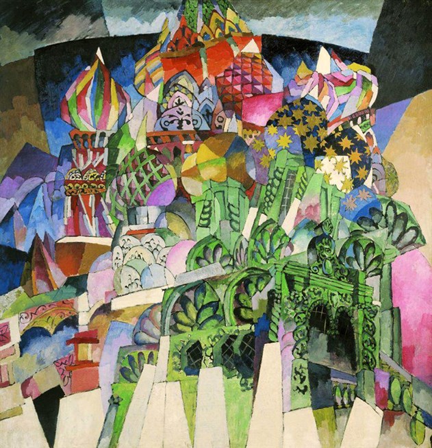 А.В. Лентулов. Василий Блаженный. 1913 год. Холст, масло, наклейки из фольги. Третьяковская галерея.