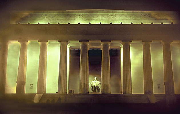 Мемориал Линкольна в Вашингтоне. За колоннами (которых 36 — по числу штатов во времена президентства Линкольна) статуя одного из самых выдающихся государственных деятелей США — президента Аврааама Линкольна.