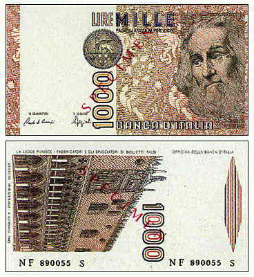 Одна тысяча итальянских лир. 1982 г.