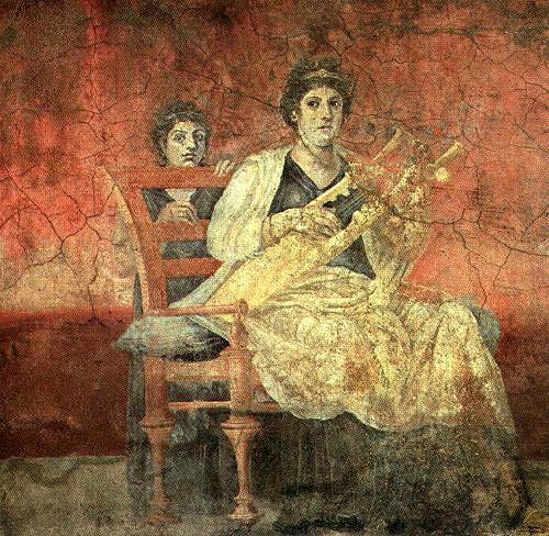 Женщина с лирой. Фреска из Помпей. 1 в. до н.э. Национальный музей, Неаполь.
