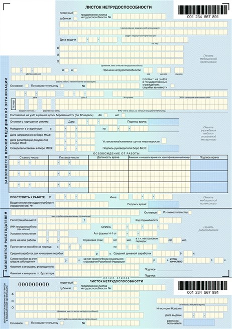 Листок нетрудоспособности, утверждённый приказом Минсоцразвития от 26.04.2011 г.