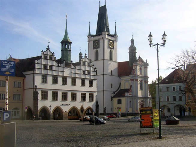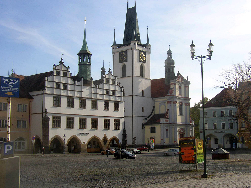 Литомержице. Старая ратуша (ныне — Городской музей) с костелом Всех Святых.