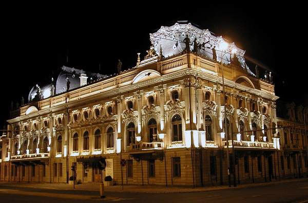Лодзь. Дворец Израиля Познаньского при ночном освещении.