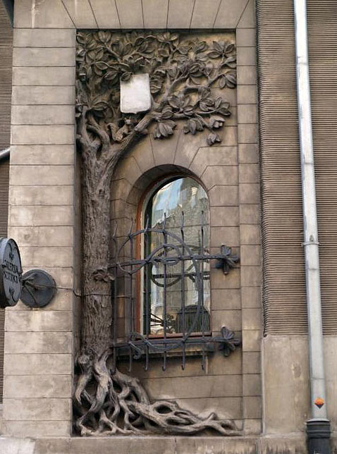 Лодзь. Окно виллы Киндерманна, украшенное каменной резьбой.