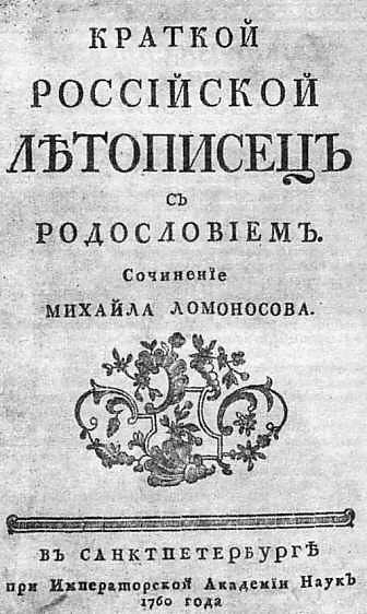 Титульный лист «Краткого летописца с родословием» М. В. Ломоносова. 1760.