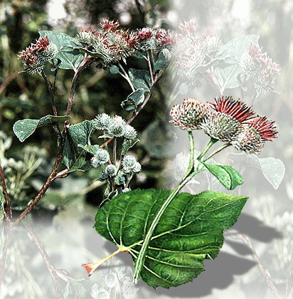 Лопух войлочный. Всем известны вооруженные острыми крючками плоды лопуха, от которых не так-то легко избавиться. Прицепившись к шерсти животных, они могут перемещаться на значительные расстояния, повсюду рассеивая семена.
