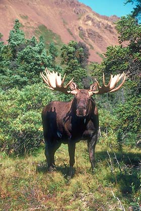 Североамериканский лось намного крупнее своего европейского родича. Размах его рогов достигает 2 м, высота в холке 2, 2 м.
