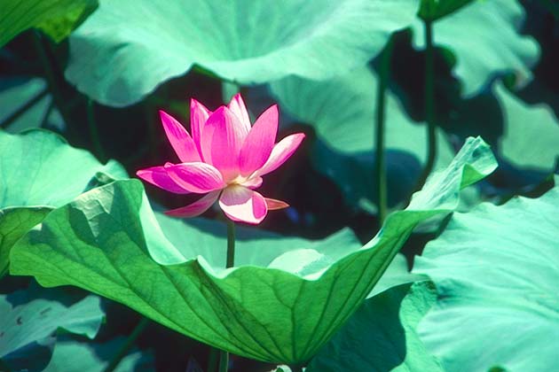 Цветет розовый лотос.