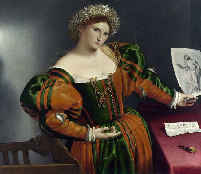 Лоренцо Лотто. Портрет венецианки в образе Лукреции. 1533 год. Холст, масло. Лондонская национальная галерея.