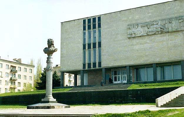 Луганск. Краеведческий музей, перед зданием музея памятник Карлу Гаскойну, шотландскому инженеру-металлургу, приглашенному в 1789 в Россию Екатериной Великой. Гаскойн был первым директором Луганского литейно-пушечного завода.
