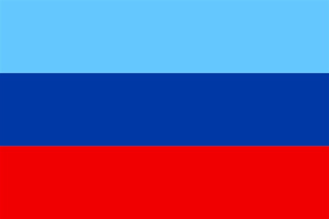 Геральдическое описание: Государственный флаг Луганской Народной Республики представляет собой прямоугольное полотнище из трёх равновеликих горизонтальных полос: верхней — голубого, средней — синего и нижней — красного цвета. Отношение ширины флага к его длине 2:3.