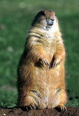 Луговая собачка в характерной позе столбиком обозревает окрестности. Эти обитатели североамериканских прерий внешне очень напоминают наших сусликов.