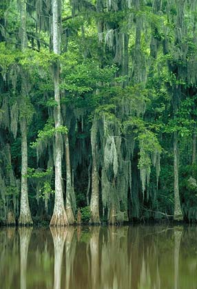 Деревья, покрытые зарослями тилландсии уснеевидной (так называемый луизианский, или испанский, мох).