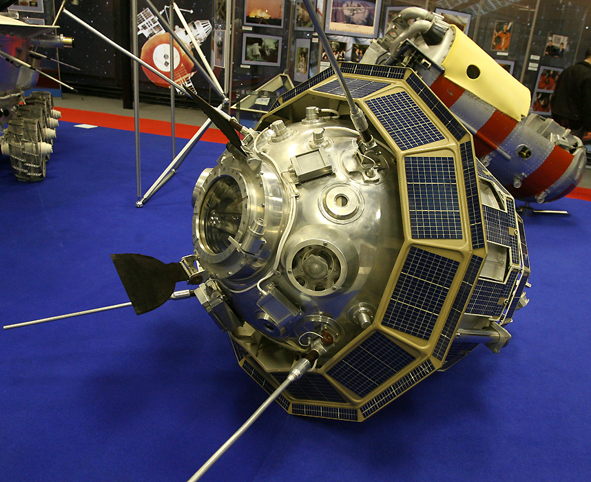 Автоматическая станция «Луна-3» — экспонат Мемориального музея космонавтики на территории Всероссийского выставочного центра в Москве. Октябрь 2006 года.