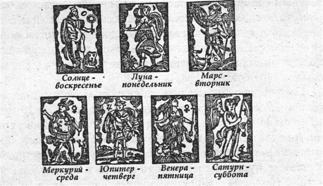 Европейские символы дней недели (из старинной венгерской книги «Gypsy Planet and Dream Book»)