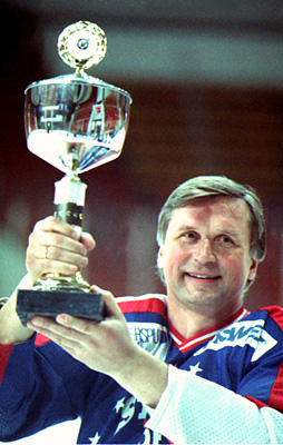 В. Я. Лутченко, капитан сборной команды ветеранов России по хоккею с шайбой, ставшей чемпионом мира. Лиллехаммер. 1992 г.