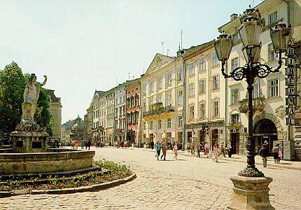 Львов. Старинная площадь Рынок. На площади расположено сорок пять зданий, являющихся памятниками архитектуры.