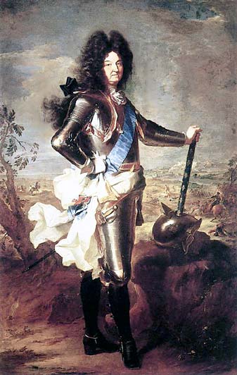 В царствование Людовика XIV Франция вела большое количество войн. На портретах король часто изображался в образах победителя, хотя в итоге войны истощили страну.