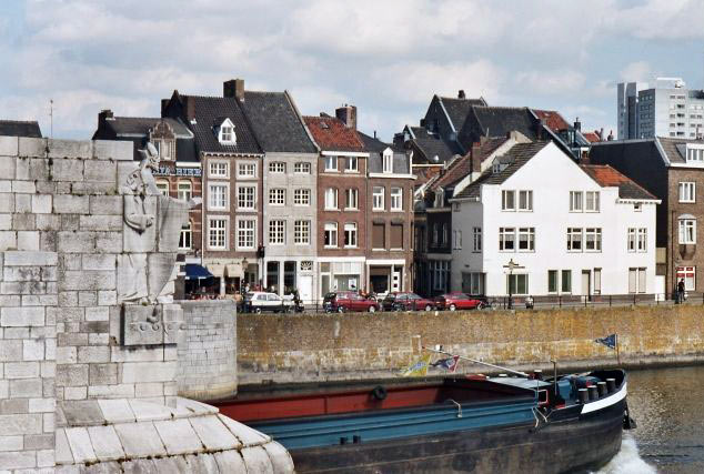 Маастрихт. Статуя святого, который благословляет корабли, проплывающие под мостом Синт-Серваасбюрг.