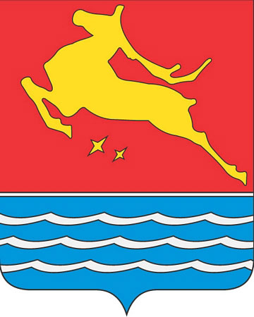 Герб Магадана был утвержден 18 июня 1969 года и вновь принят с незначительными изменениями 1 июля 1999 года. Красный и синий цвета герба соответствовали цветам флага РСФСР. На верхней части герба на красном поле изображен в стремительном прыжке золотой олень, олицетворяющий добычу золота и оленеводство. Нижняя часть герба представлена в виде голубого поля со стилизованными морскими волнами и обозначает Магадан, как морские ворота Колымы.