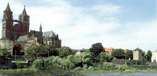 Магдебург. Вид на на собор Санкт-Маурициус-унд-Катарина со стороны Эльбы.