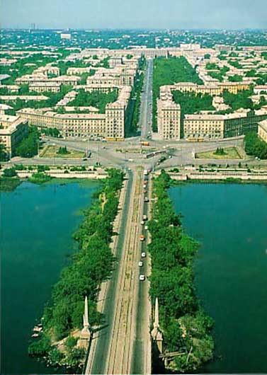 Магнитогорск. Панорама города. Вид со стороны реки Урал.