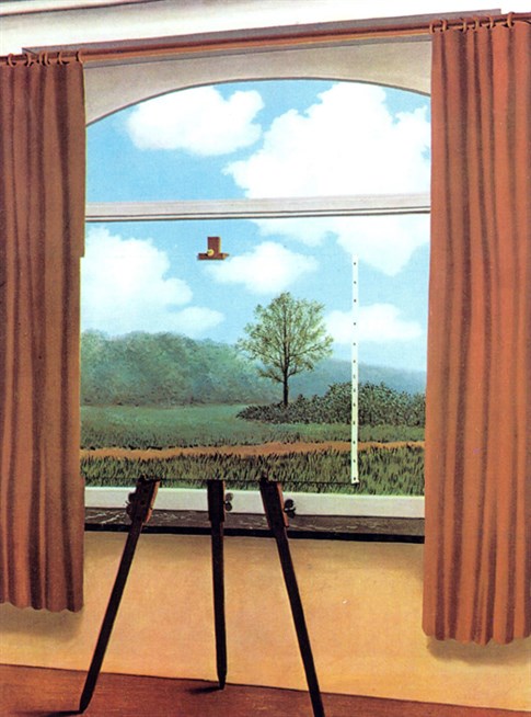 Рене Магрит. Человеческий удел 1. 1933 год. Хлст, масло. Частное собрание. Картина быоа написана в период, когда художника интересовала проблема иллюзорности пространства.