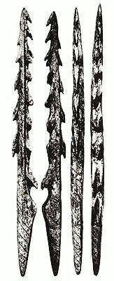 Гарпуны. Местами зубцы идут в три ряда. Мадлен, пещера Пекарна, Моравия.