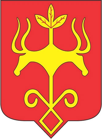 Герб города Майкоп был утвержден 28 февраля 2005 года. В червленом поле — золотой посох, увенчанный вверху тремя листьями яблони с червлеными прожилками, а внизу завершенный сквозным ромбом с двумя вьющимися стеблями. В середине от посоха отходят бычьи головы с длинными изогнутыми рогами.