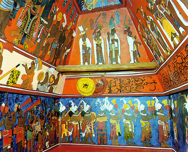 Воин. Фигуры знатных людей. Фрагмент фресковых росписей храма в Бонампаке. Вторая половина 18 в.