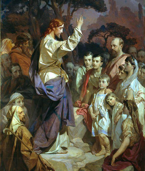 Иван Кузьмич Макаров (1822-1897). Нагорная проповедь. Христос благославляющий царское семейство. Около 1890 года. Холст, масло. Музей истории религии, Петербург.