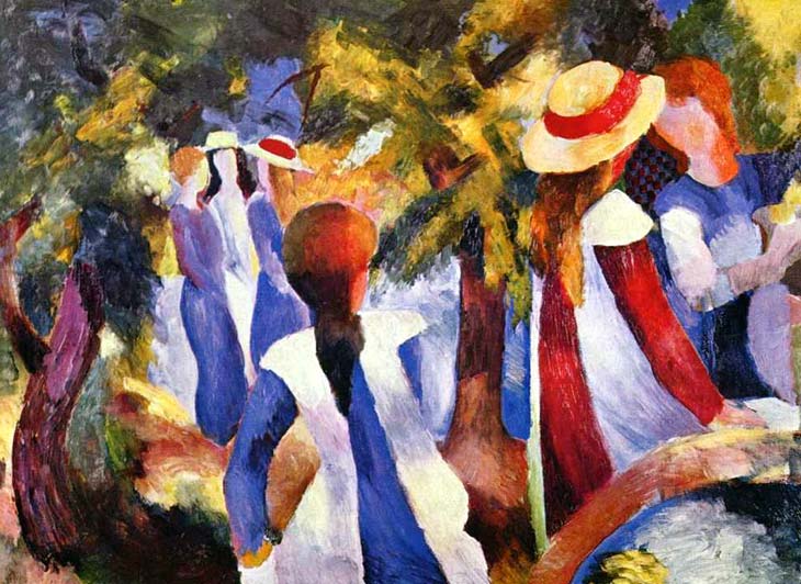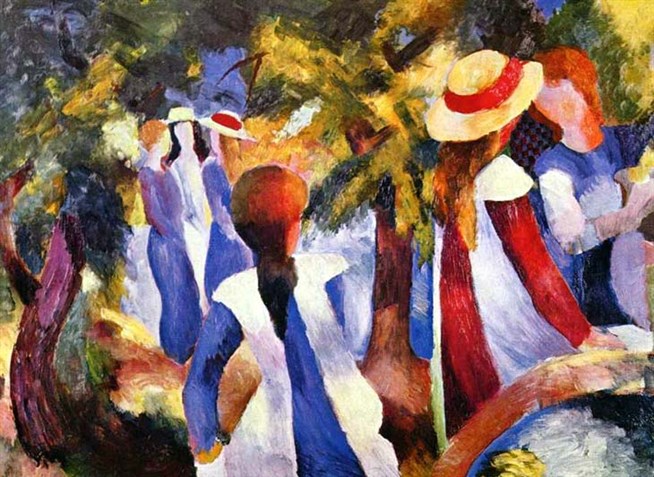 Огюст Маке. Девочки в зелени. 1914 год. Холст. Баварское собрание картин, Мюнхен.