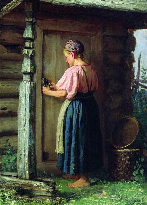 В.М. Максимов. Девушка у амбара. 1874 год. Холст, масло. Пермская художественная галерея.