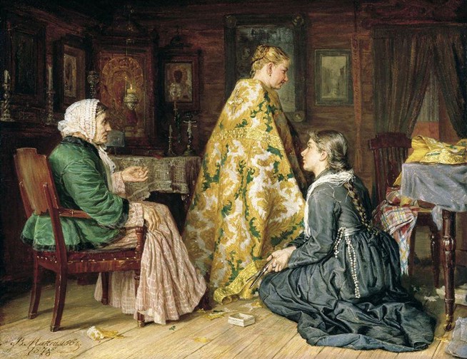 В.М. Максимов. Примерка ризы. 1878 год. Холст, масло. Кировский художественный музей.