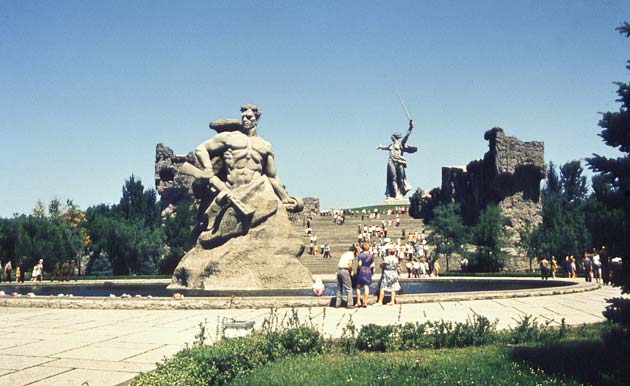 Памятник-ансамбль «Героям Сталинградской битвы». На переднем плане монумент «Стоять насмерть».